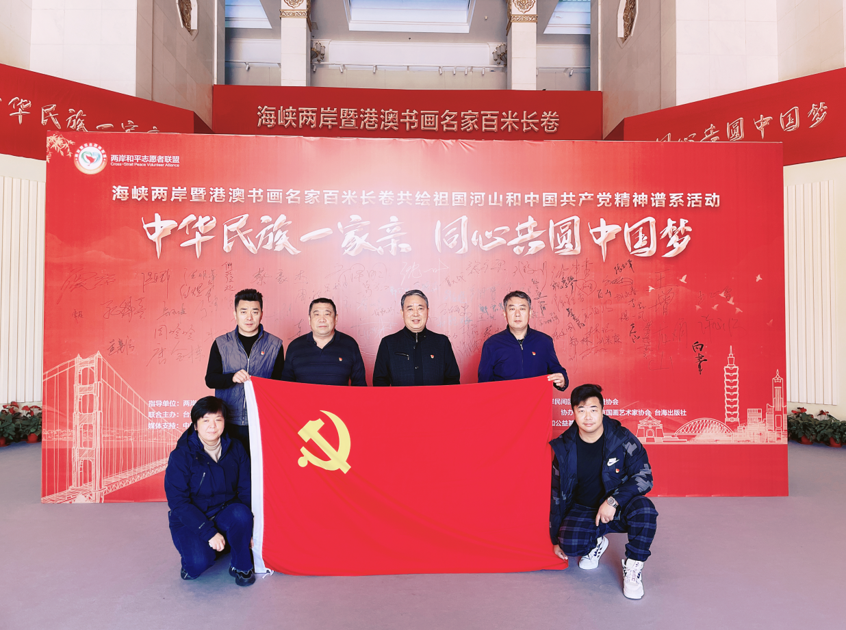 大家认真参观了正在民族文化宫举办的“中华民族一家亲 同心共圆中国梦——海峡两岸暨港澳书画名家百米长卷共绘祖国河山和中国共产党精神谱系活动”。展出的百位海峡两岸暨港澳艺术家携手创作的两幅百米长卷及书画精品百余幅。用感人至深的画面描绘、讴歌中国共产党的精神谱系和祖国大好河山。充分表达了艺术家们热爱祖国、热爱中国共产党的诚挚情感。