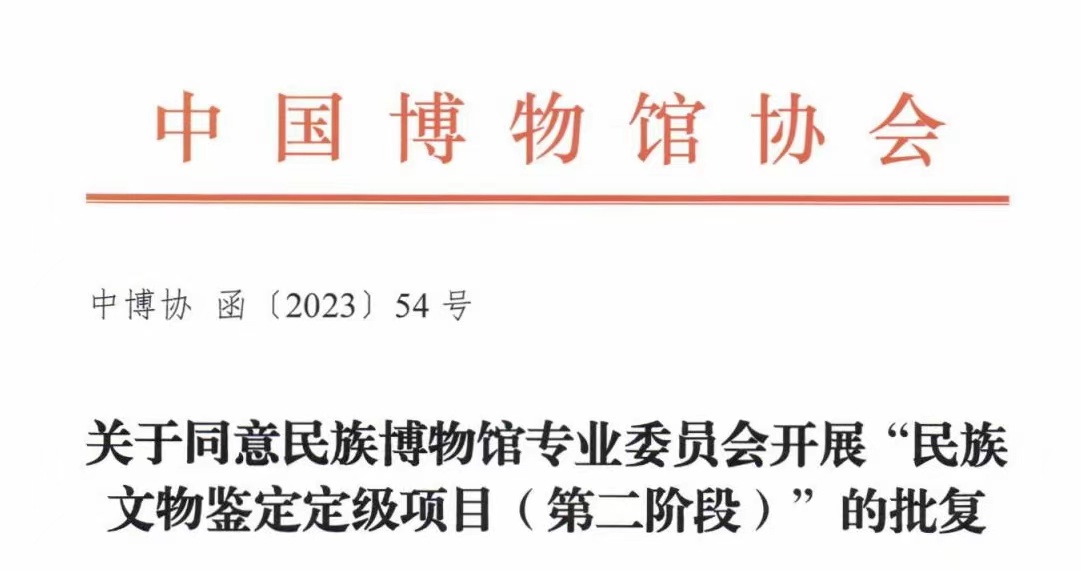 近日,中国博物馆协会民族博物馆专业委员会申请的“民族文物鉴定定级项目(第二阶段)”经中国博物馆协会正式批复同意,并获得项目资助。