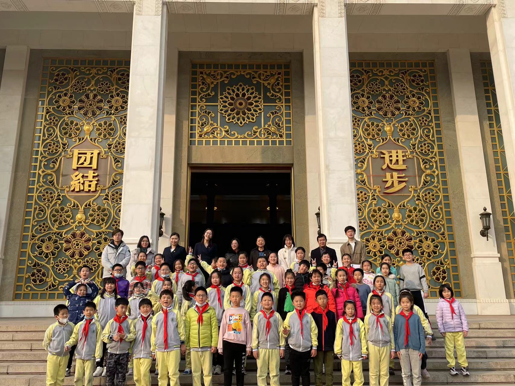 23日下午,西单小学三、四年级参加博物馆课程的52名同学来到民族文化宫,开启博物馆第二课堂之旅。正式开班前,民族文化宫博物馆馆长陶颖、北京市西单小学副校长贺颖分别讲话,希望同学们通过参加博物馆课程班的学习,能够进一步了解我们各民族的优秀传统文化,从文物背后的故事中感受中华民族大团结的重要,并祝愿孩子们能在博物馆收获一段美好的学习时光。民族文化宫博物馆馆长陶颖、副馆长崔德志,北京市西单小学副校长尹宝霞、贺颖等一起观看、指导现场教学,并与同学们在民族文化宫主楼大门合影留念。