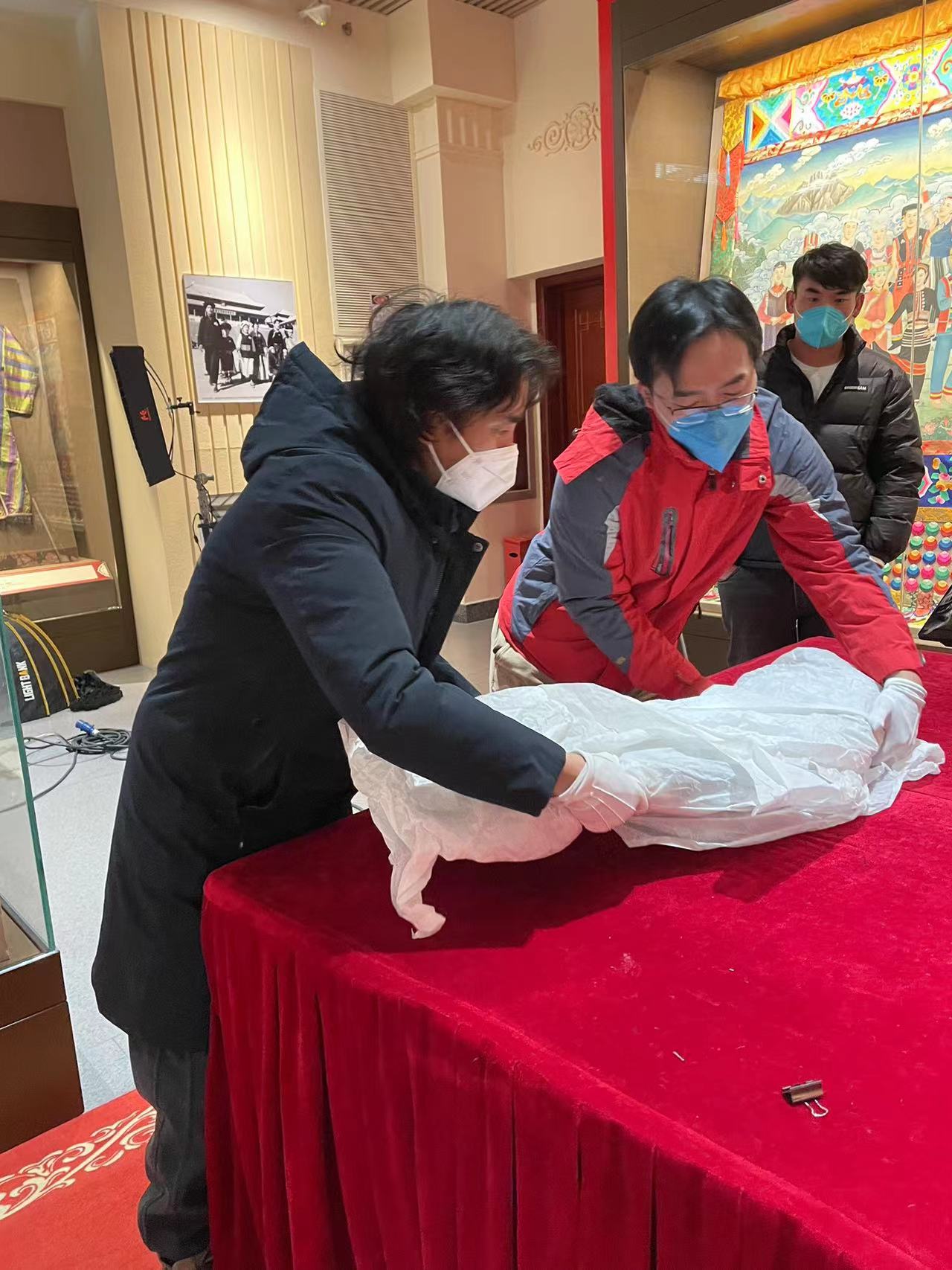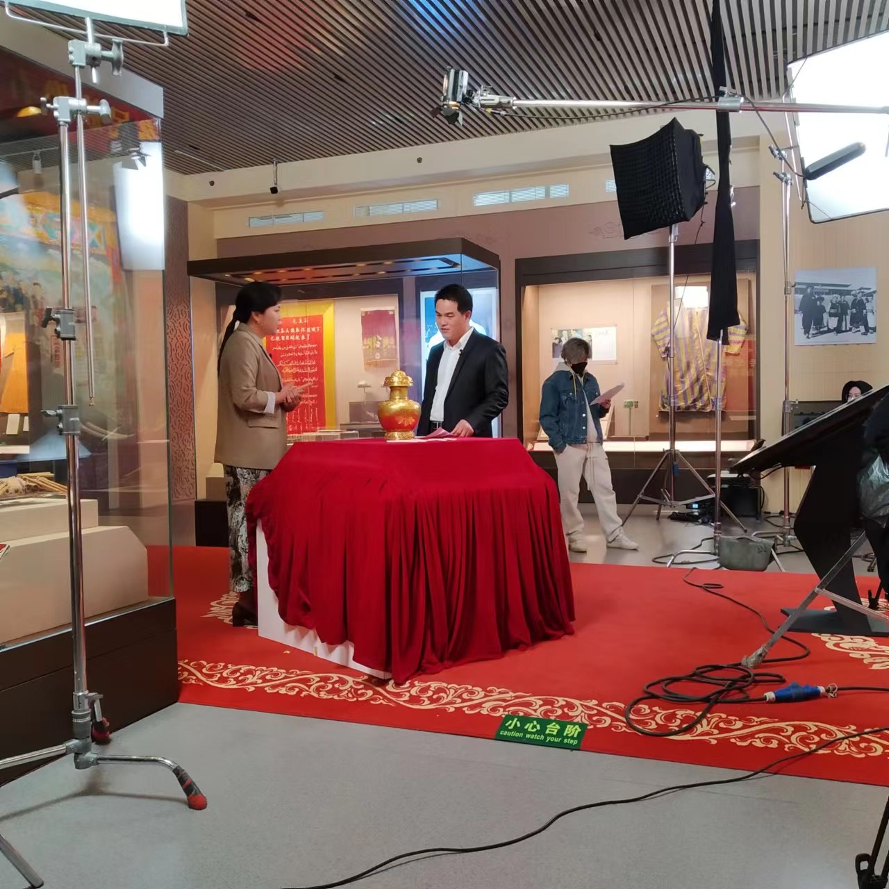 ▲准备拍摄视频的文物