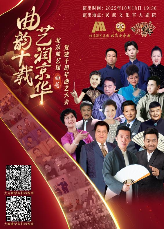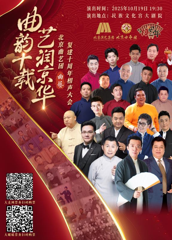 10月18日、19日,“曲韵十载 艺润京华”北京曲艺团复建十周年专场演出将在民族文化宫大剧院精彩上演。