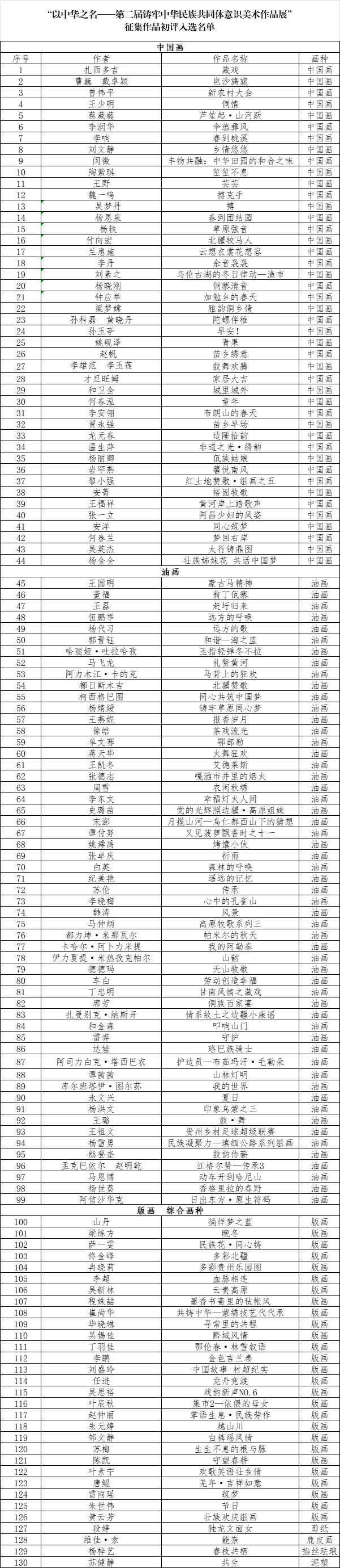 “以中华之名——第二届铸牢中华民族共同体意识美术作品展”征集作品初评结果公布