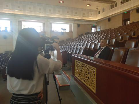 著名钢琴家刘诗昆来民族文化宫大剧院 接受日本NHK采访