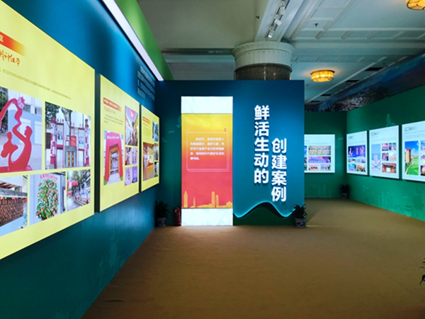 创建成果展以铸牢中华民族共同体意识为主线,分为“绚丽多彩的春城昆明”“倾情传承的历史脉络”“融荣与共的创建之路”“异彩纷呈的县区创建”“鲜活生动的创建案例”“独具特色的文创产业”“脱贫攻坚的昆明华章”“诗意盎然的文旅胜境”八个单元,全面呈现了昆明市民族团结进步创建工作新成效,充分展示了昆明牢记习近平总书记嘱托,坚定创建民族团结进步示范区、坚决打赢脱贫攻坚战、努力推动高质量发展取得的丰硕成果。